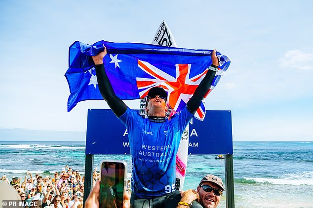Ha festeggiato gridando ‘Cazzo, sì, c***o!’ mentre alzava la bandiera nazionale mentre era presieduto dagli altri surfisti Tim Macdonald e Jacob Willcox in una celebrazione molto australiana.