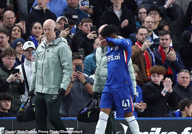 Estevão ha pianto dopo essere uscito dal campo infortunato durante la sconfitta del Chelsea sabato.
