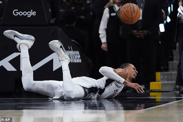 La superstar dei San Antonio Spurs Victor Wembanyama colpisce la testa in campo