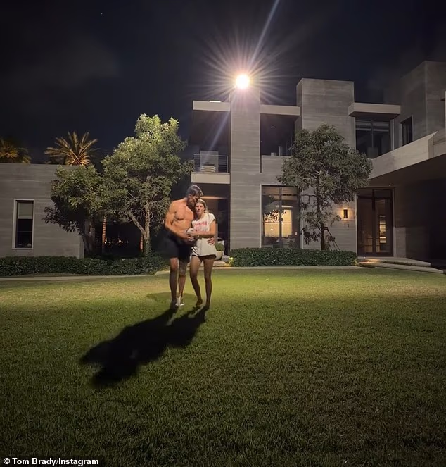 Il video li mostra mentre tengono una serie di impressionanti raduni serali in quello che sembra essere il giardino della villa di Brady a Miami da 150 milioni di dollari.