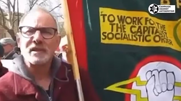 Un autista della metropolitana di Londra fotografato durante una protesta mentre guida dicendo che gli ebrei non sono sicuri sulla linea Bakerloo. Da allora è stato sospeso