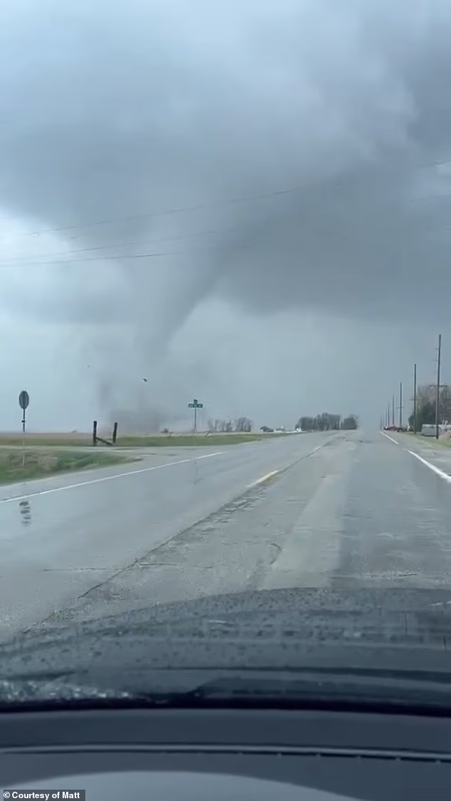 Un cacciatore di tempeste, identificato solo come Matt, ha condiviso un video con il Daily Mail di un enorme tornado che ha colpito vicino alle città di Chester e Marion, nell’Illinois.
