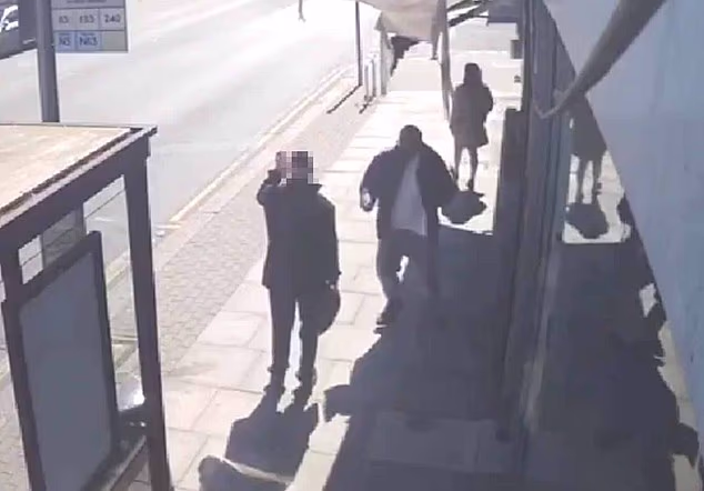 Il video ottenuto dal Daily Mail mostra il sospetto che aggredisce un uomo in attesa alla fermata dell’autobus e lo pugnala freneticamente prima che due eroi passanti si precipitino ad aiutarlo.
